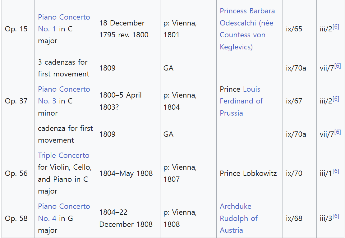- 베토벤은 자신의 초기 작품을 Op. 1부터 시작해 대부분의 작품에 Opus 번호를 붙였습니다. 예를 들어, 교향곡 5번 C단조는 Op. 67입니다.